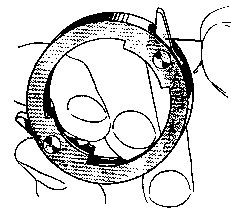 Place the gear ring, with the teeth downwards, on a flat surface. Place a pawl spring along the side of a pawl so that the loop is over the pin hole and the foot is under the long nose of the pawl. While holding a pawl pin ready in the left hand, grip the nose of the pawl and the foot of the spring-between the thumb and forefinger of the right hand and slide the pawl, tail first, between the flanges of the gear ring. When the hole in the pawl and the loop in the spring coincide with the holes in the flanges, push the pawl pin into position.